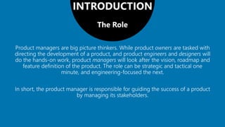 Product managers oversee the development and improvement of products and understand the customer experience to create product prices and determine potential future requirements. And while the specifics can.