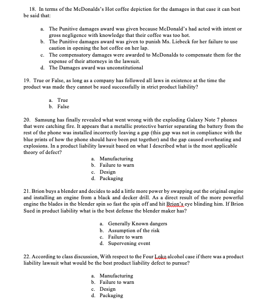 18 In Terms Of The Mcdonalds S Hot Coffee Depiction Chegg Com